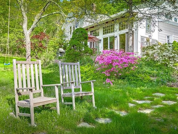 Unique and Special HOME! This Colonial features a spectacular SUNROOM with cathedral ceiling, skylights, full wall made up of 3 sliders overlooking a patio and a beautiful landscaped property! Kitchen features a large dinette-family room combo, corian counters, new stainless steel appliances, and a large pantry too! Brick surround imported fireplace. Master bedroom with balcony overlooking the sunroom! Large bedroom closets have built in shelving. Steam shower. Restrained Hardwood floors and ceilings recently resurfaced. Cedar wood ceilings uniquely done, special construction without nails! So many updates! All new bathrooms, New central air and heating system, new hot water tankless system, new garbage disposal, new garage doors, young roof too. Beautiful flat landscaped park-like property with a pond! Shed. Great location near Children's Park!