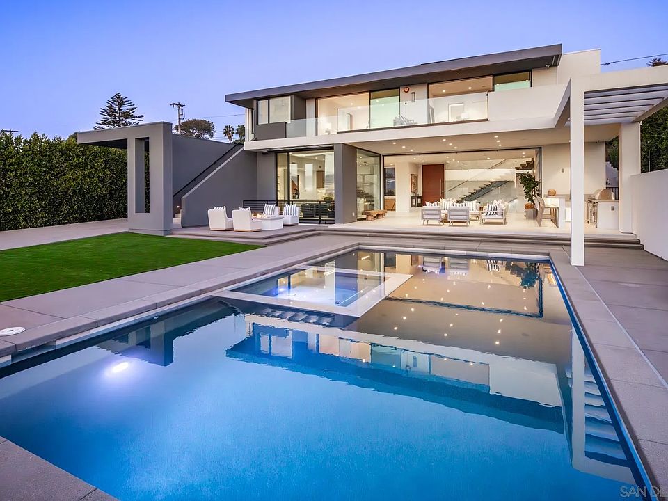 Welcome to 521 - 523 S Rios, stunning newly built 2023 ocean-view home with $2 Million of owner upgrades in 2024. This home is just steps from Cedros Design District in the heart of coastal Solana Beach; offering amazing world class restaurants and nightlife just 3 minutes away by foot. This home is a short walk to the Del Mar Fairgrounds & Racetrack and the stunning beaches and dog beaches of Del Mar & Solana Beach. Designed by EOS Architecture and developed by RMCI Group this contemporary compound is a total of 6,731 square feet with a luxurious 7 bedroom/10 bath main house (6,206 sq. Ft., including a detached guesthouse/ADU with 1 bedroom/1 bathroom (525 sq. ft.). This home features sophisticated architectural details, including a teak pivot door, soaring 11-foot ceiling enhanced by Kuzco and Fifth Avenue light fixtures, floating glass stairs, stone columns and walls, French oak-gray washed wood floors and a Lutron lighting system designed to create the perfect ambiance. Awake sliding glass doors seamlessly connect the indoor living spaces to the outdoor oasis complete with a 40-foot pool, 10x10 spa, an outdoor kitchen, dining and bar seating, a fire pit, acid-etched concrete patios and multiple lounge areas - creating an atmosphere reminiscent of a high-end luxury resort. The gourmet kitchen is equipped with top-of-the-line appliances including a Sub-Zero refrigerator, second Sub Zero refrigerator for the butlers pantry and wine fridge, Gaggenau 6-burner induction gas cooktop, Wolf microwave drawer, two Miele dishwashers and a spacious Butler’s pantry. The Primary Suite welcomes you with sweeping ocean views from its private deck, a gas fireplace with porcelain slab surround, dual custom walk-in closets, a Sub-Zero refrigerator with custom cabinetry, a coffee bar and electric sun shades. The luxurious master bath features porcelain tile floors, a spacious shower with rain shower heads and a soaking tub. The guesthouse/ADU boasts a flexible layout complete with a wet bar and direct access to the outdoor living space and fire pit, maintaining the same design aesthetic and luxurious feel found throughout the rest of the home. Newly built in 2023 the home has also been completely customized in 2024 with a number of state of the art features including a Savant system that integrates a full security protocol with 360 degree cameras & 24/7 surveillance, automatic & remote access blinds throughout the entire home and mobile door locking. Brand new upgrades include 25 foot tall Indian Laurel hedges around the north-western perimeter, a wellness circuit with Clearlight 3-person cedar-lined dry sauna, Breathe Degrees Cold Plunge with 36 Degree chiller and Redwood enclosed surf shower. The Seller installed new Toto toilets with Washlets, new TVs throughout the home, mobile access to HVAC through the Savant system and a new Kitchen in the first floor bedroom perfect and convenient for family or as caretaker quarters. Additionally, recent installations include a whole house PurEarthH2O water softening and reverse osmosis system and 3 location drinking water faucets. EOS Designed, RMCI built and further customized throughout all of last year; this home is packed with value and as impressive as you will ever see alongside the ocean here in Solana Beach!