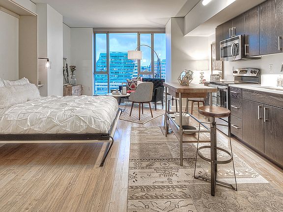 - Exterior features: Balcony, Business and Conference Center, Energy Efficient Stainless-Steel Appliances, Fiber Optic Internet Access, Guest Room, High-End Finishes, Mobile Kitchen Island, On-site Restaurants and Bars, On-site Retail, Package Receiving, Quartz Countertops, TV Lounge, Theater, Zip Cars