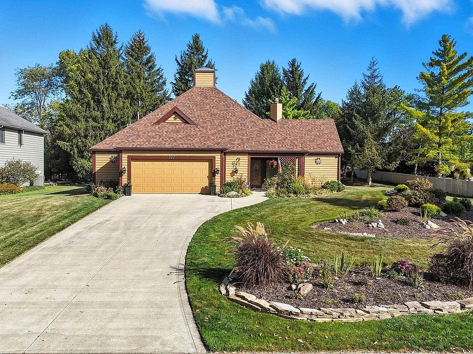 Welcome to Fallen Timbers – a true hidden gem! Nestled in one of the premier neighborhoods of the mid-'80s, this well-established community is known for its unique homes, spacious private lots, and canopy of mature trees — all tucked away in an unbeatable location. Set on a half-acre lot, this beautifully updated home offers nearly 3,100 sq ft of living space, with extensive upgrades inside and out. The exterior has been thoughtfully refreshed with new paint, a 2022 roof with skylights and gutter guards, and a redesigned backyard oasis. Sixteen trees were removed to expand the backyard, and the fence line was extended to the rear boundary — offering an expansive space to relax or entertain. A brand-new concrete patio with an epoxy finish invites outdoor gatherings, while lush landscaping adds to the home's curb appeal. Inside, you’ll find a flowing, central stairwell layout anchored by a recessed great room with soaring ceilings and a cozy gas log fireplace. The main-level primary suite is a true retreat with private access to the back patio, a walk-in closet, and an updated en-suite featuring a ceramic tile shower. The kitchen blends style and function with stone countertops, a new tile backsplash, and included appliances. Fresh paint, newer flooring, and updated light fixtures add a modern touch throughout. A sun-drenched 4-season room overlooks the scenic backyard — perfect for morning coffee or winding down after a long day. Upstairs offers two spacious bedrooms, a full bath with dual-sink vanity, and a versatile loft with custom built-ins. The finished basement adds a rec room, wet bar, full bathroom and extra unfinished storage space — ideal for hobbies or future expansion. A radon mitigation system and HVAC maintenance program is already in place for peace of mind. Buyer bonus - the riding mower will remain. This is more than a house — it’s a place to call home. Don’t miss your chance to own a piece of Fallen Timbers. Contact your favorite local Realtor to schedule a private tour today!
