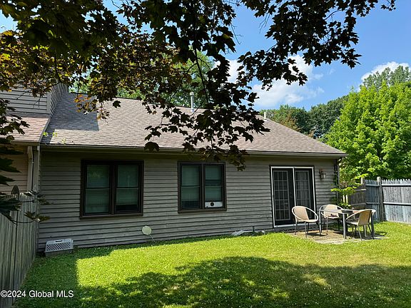 Welcome to 521 Townwood Drive in Guilderland. This ranch end unit offers livingroom and dining area leading to kitchen and then sliding door to patio and fenced yard, two bedrooms and one bath, one car attached garage. Cathedral ceiling in living room & dining room with hardwood floors. Tile foyer and hallway with carpet in both bedrooms. Location is convenient to area amenities and highways. Schedule your private showing today. Showings begin 4/29/2025. Restricted dates and times.