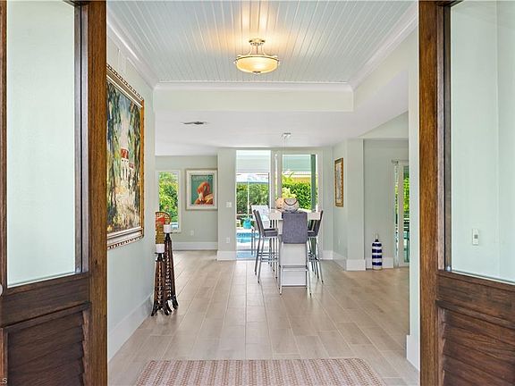 This delightfully completely remodeled home was reimagined with today's open concept living and is located on a quiet street less than 1 mile to Venetian Village shopping/dining & the private Park Shore beach park. As you walk through the new mahogany front door you see the beautifully, privately landscaped pool area through floor to ceiling sliding glass doors. Tile flooring throughout looks like weathered hardwood. Custom cabinetry throughout kitchen, all 3 bathrooms & laundry room. All new impact glass sliders, front door & new hurricane rated garage door. Tray ceilings in main living area & master suite. No detail was overlooked in this renovation, including completely refurbished pool/spa with sea colored glass tile, extended pool decking with all new travertine. The screened in covered area features 4 sets of sliding screen doors for easy access to pool area. This home will not disappoint & is perfect for the most discerning buyer!