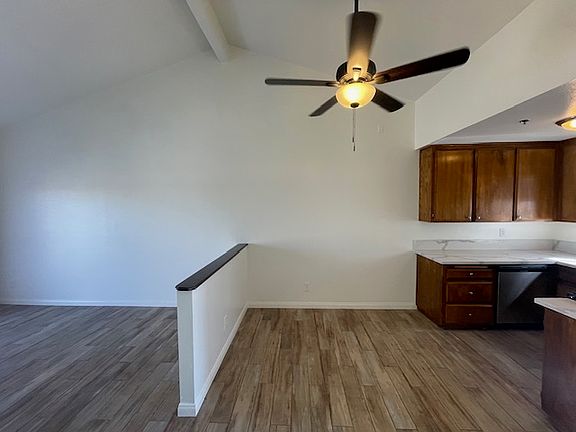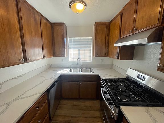 Welcome to this beautifully renovated 1 bedroom, 1 bathroom apartment featuring fresh paint, stylish tile plank flooring, and a cozy carpeted bedroom. The modern kitchen boasts sleek quartz countertops and brand-new stainless steel appliances, including a dishwasher, stove, and range hood. The bathroom offers a contemporary vanity with quartz top and elegant new sliding glass doors. Enjoy the comfort of brand-new electrical fixtures, a brand new high-efficiency AC, and a new furnace for year-round comfort. Additional features include vaulted ceilings and a small backyard. The apartment offers central air and heat, one carport space, and access to an on-site laundry room. Water and trash are included. Tenants are responsible for all other utilities. No pets are permitted. 1 extra parking space is available at an extra $75 per month.