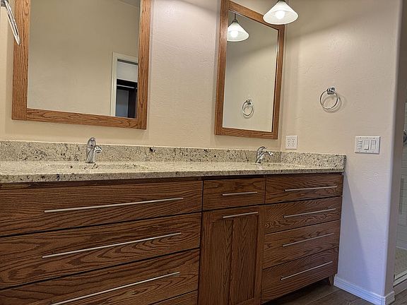 Very Well Kept Townhome located on One of the Communities Premium Green Belt Lots.The interior was remodeled in 2020. The floors throughout have wood-grained ceramic tile. The master Bathroom has a Double Sink Executive Height Vanity with granite countertop. The shower is tiled to ceiling with frameless shower doors. There is a customized walk-in closet. The Guest bedroom has a customized walk-in closet also. The Guest Bathroom has a deep soaking tub with tile walls above it. Both bathrooms have raised toilets. The kitchen has a gas range. The counters are granite with marble backsplash. Two Car Garage is 24 Ft Deep and has plenty of Room For Ext Cab Pickup. The garage floor has an epoxy coating. There are cabinets for more storage with a small work bench. Newer HVAC Unit. There is a patio across the back of the house with a railing so the view is not obstructed.The HOA fees include Maintaining Your Landscaping, Stucco, Paint and Roof. Also, Included is the Water For Landscaping; Monthly Pest Control, Expanded Basic Cable TV; Weekly Trash and Recyclable Pickup; Fire, Hazard and Liability Ins; Common Areas, Gates and Real Upkeep; And They Maintain a Healthy Reserve Fund. This is the Lifestyle You Deserve
