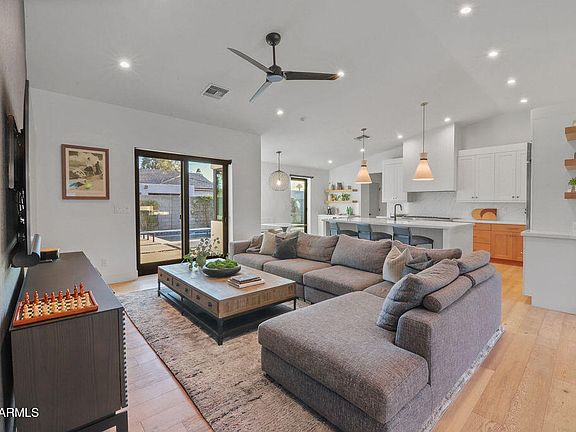 This Mid Century Modern Home, built in 2021 by Jammon Studios and FHP Builders, is a tasteful and inviting retreat! With open concept design, wood floors and vaulted ceilings, its a space built for gathering. Entertain in the gourmet kitchen with Thermador appliances, quartz counters and 6 burner range. Relax in the luxurious primary bedroom with high ceilings, sliders to patio and stunning bath with walk in shower, free standing tub and double vanities. The backyard is lush with mature landscaping, outdoor kitchen, fire pit table and an inviting pool with elevated spa and spillway water feature. There's also an intimate front patio with custom fireplace. All of this in a highly sought after North Central Phoenix location, minutes to the Bridle Path, Uptown Plaza and local favorites!