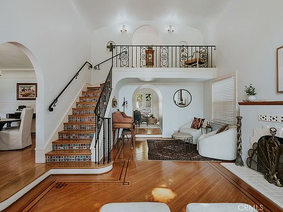 Beautifully preserved two-story Spanish Revival home with separate ADU situated on a historic street in vibrant Fullerton! Masterfully blending classic architectural character with modern comfort—this light-filled main residence offers 3 spacious bedrooms and 2.5 baths, with a convenient first-floor bedroom and bath. Enjoy multiple gathering spaces— including a family room, formal living room, and separate dining area, all flowing from a recently updated, modern-retro style kitchen. Meticulously maintained to preserve its original charm—featuring ornate trim, wall paneling, interior French doors, and original hardwood floors accented with rich cherrywood details. The formal living room impresses with its vaulted ceilings, grand arched window, wrought iron staircase, and stylish fireplace, creating the perfect setting for both relaxation and entertaining. Upstairs, a large open-air patio deck terrace overlooks the lush front lawn and mature flower garden, enhancing this home’s curb appeal and serene atmosphere. Outside, a long driveway, carport, and tandem 2-car garage provide ample parking with dual access from both the front and back streets. Step into the private backyard courtyard to unwind by the built-in exercise pool or relax in the attached spa. Additional modern updates include upgraded plumbing and electrical, a forced-air pulse heating system, and energy-efficient windows for year-round comfort. The property includes a fully updated two-story detached ADU, featuring 2 rooms, 2 full baths, its own roof deck great for entertaining, and a private separate driveway entrance—perfect for extended family, guests, or reliable rental income. Don’t miss this rare opportunity to own a vintage Fullerton Spanish Revival treasure—a home that captures the beauty of the past while offering modern versatility and income potential!