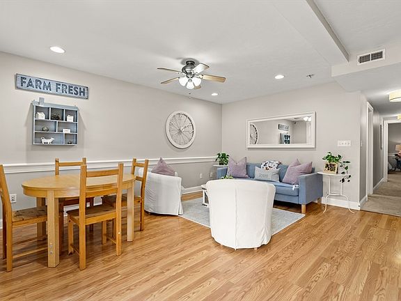 Sunny and spacious condo in a charming 4-unit complex! This beautiful main-level home features a covered patio with French doors opening to a light-filled interior. The open kitchen, living, and dining area offers stainless steel appliances, recessed lighting, and ceiling fans. Two large bedrooms showcase high ceilings, detailed molding, and recessed lighting. A convenient half bath includes laundry hookups, while a separate family room provides flexible living space. The front foyer adds a splash of character with a spiral staircase to the main entrance and doubles as storage. Additional highlights include central air, gas heat, and accessible parking. This pet friendly complex is ideally located just minutes to the commuter rail, scenic Island Grove, shopping, restaurants, Abington dog park, hospitals, and highway access. With a low condo fee, spacious layout, and move-in ready condition, this home is a must-see!