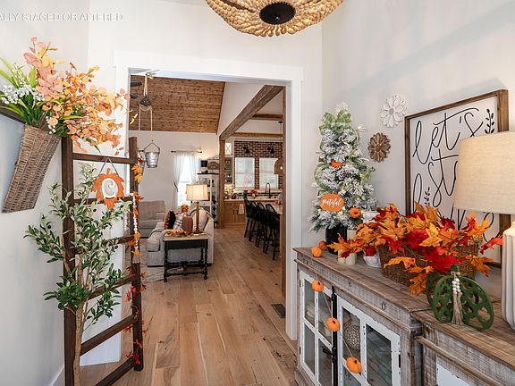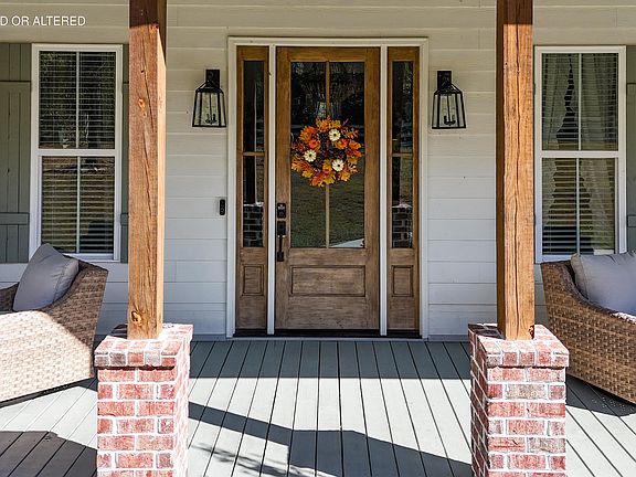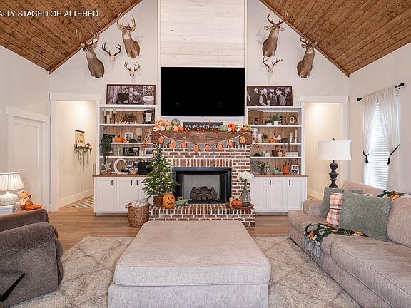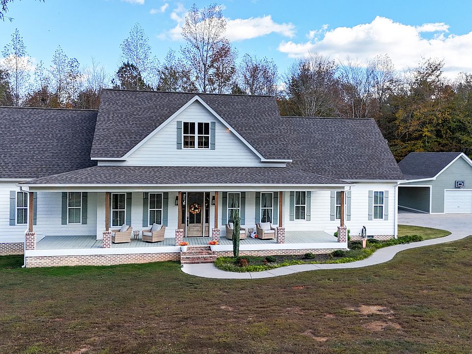 Gorgeous, immaculate 4 bed/2.5 bath home nestled on 3+ picturesque acres with a pool. Upon arriving you will be amazed by the rocking chair front porch, front lit fence, private country setting. Once you enter this home you will notice soaring ceilings with tongue and groove with plenty of recessed lighting, shiplap, custom brick fireplace with gas logs, open living ready for the family. The unique kitchen features brick backsplash, living stone countertops, huge island with built ins, GE Profile stainless appliances. Custom solid wood cabinets have upper cabinet lighting with easy slide. Back screened in porch is 24x24 with huge fireplace ready for your gas logs, outdoor living at it's finest with a view of the 18X36 in ground pool. Just inside the back entrance from porch there is custom storage/mudroom area, down the hall you will enter the master bedroom suite large enough to lounge by the electric fireplace and unwind in private after a busy day. Custom tongue and groove specialty ceiling with a ceiling fan are just a few added extras to the peaceful master, the bathroom has a soaking tub with a separate tile shower, dual vanities, huge walk in closet. The bedrooms are split. The laundry is another bonus with plenty of cabinets and a window. 3 additional bedrooms are well lit, jack and jill bath with tile shower and double vanities. There is an outside 18X30 detached garage/carport/work area. Crawlspace is encapsulated. The sellers have cut no corners on this home. Schedule your private showing today.