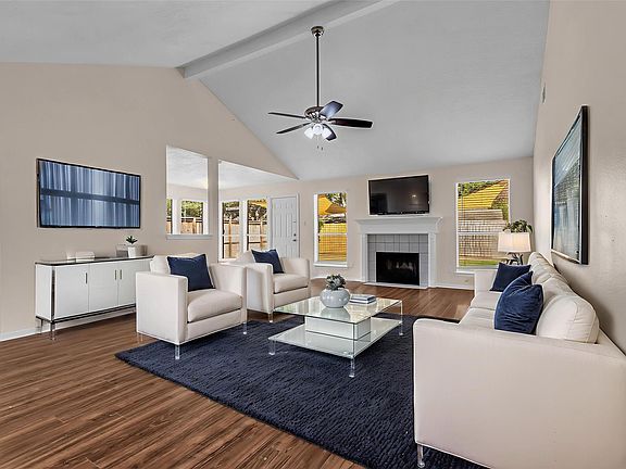 Approximately 1,800 square foot, single-story home with three bedrooms and two bathrooms. The updated residence features an open floor plan with a gas fireplace and cul-de-sac location. The primary bathroom showcases a double vanity, separate shower, and garden tub. The home offers great value with low taxes.