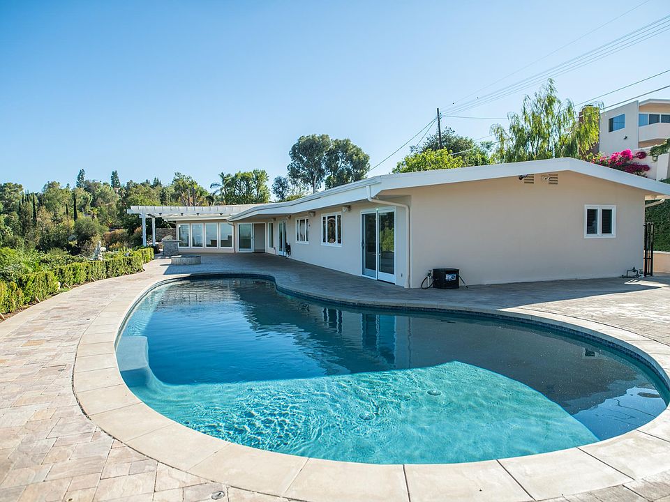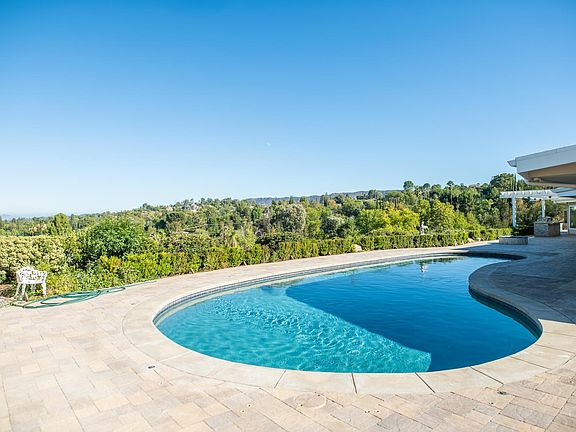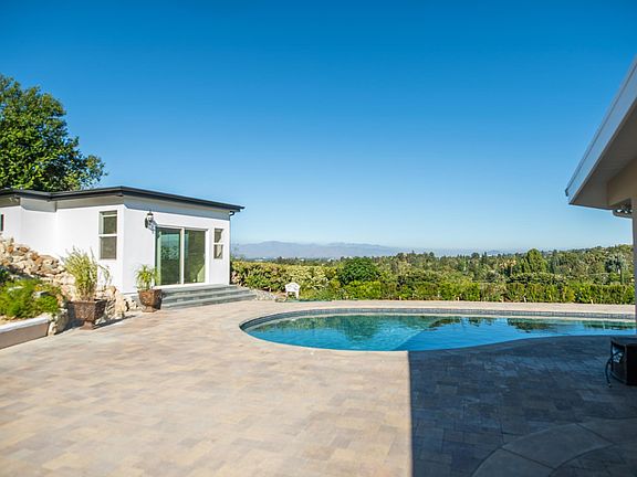 Secluded behind private gates & below street view lies this lovely single-story situated on over 20,000 SqFt with expansive valley and canyon views. The large family room with wall-to-wall glass windows welcomes you and offers ample space for entertaining. It flows seamlessly into the spacious dining room and updated kitchen. The sun-soaked home office with floor to ceiling bookshelves and sliding door access to the rear yard is the perfect space to draw inspiration. The primary bedroom can be found at the rear wing of the home beyond the 2 guest bedrooms and continues an indoor-outdoor flow with additional access to the rear deck. Charming backyard space features an outdoor grilling station, hillside orchard with mature fruit trees and cascading stone waterfall; a perfect setting for al fresco dinners. The bonus guest house with full bathroom makes for a perfect studio, workspace or ADU. Conveniently park along the street above or private driveway to supplement the 2-car garage. Enjoy this incredible home as-is or take it to new heights by taking it on as a project. Up to 10 months rental agreement.
