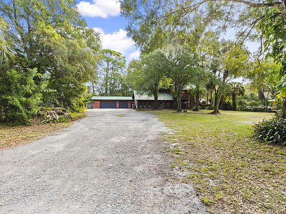 One of a kind two story cedar home nestled beneath a canopy of mature oaks in Indian River Estates. Sitting on just shy of an acre (.91/acre) it blends rustic charm w/ spacious functionality. Step inside to soaring 20-foot vaulted ceilings w/ exposed cedar beams, a cozy flagstone fireplace, & a layout flooded w/ natural light. The kitchen offers granite countertops, stainless steel appliances, & a convenient breakfast bar. Non load bearing walls mean you can create the open concept kitchen of your dreams! Need a shop? You'll love the detached 3.5 car garage ideal for hobbies, storage, or a workshop. Enjoy the privacy of your fenced backyard & large screen porch, plus there is room for a pool! NO HOA & County only taxes mean you can store it all here, so bring the pets and the toys!