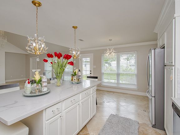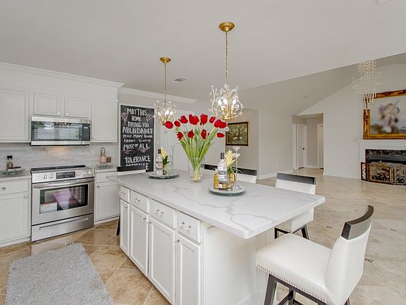 Prepare to be amazed! This home is virtually brand new ... owner has updated it throughout with contemporary crystal chandeliers, new kitchen cabinets, Quartz countertops, hardware, windows, engineered hardwood in master, appliances ... it is all new!! With 4 bedrooms and the open floorplan, it is ready for today's lifestyle. The kitchen with a large island with pendant lighting opens to the living and overlooks the patio and backyard for an abundance of natural light. Such a soft contemporary feel with sleek tile floors, the calcatta quartz and stone backsplash, and great counterspace! The master suite is upscale with stylish painted vanities new mirrors and lighting, and waterfall faucets. The home feels like a designer's showcase ... and it can be yours!