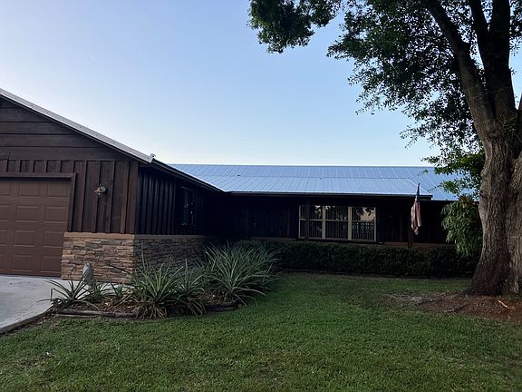 Country living with city conveniences. Agent owned 3/2/2 ranch style home on 1 acre. Features include split bedroom plan, family room, laundry room, hurricane shutters on all windows, huge 45'x 60' screened in pool area which includes a 14' x 60' covered porch. Property also features a 30' x 40' workshop with a 12 x 40 patio area, and a steer barn for the kid's 4-H project. Kitchen has been remodeled with brand new cabinets, counter tops, farm sink, barn door pantry and brand-new appliances. The bathrooms have been updated, and the air conditioner was replaced November of 2024.