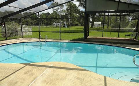 This is a large pool home on one acre in Orange Blossom Estates. Great for a growing family.There are three bedrooms all with full baths. Lots of closets and plenty of storage in the home & in the oversized garage. There is a roomy front covered porch and a large deck out back by the pool. Split bedroom floor plan with a large master wing. The master bedroom has a sitting room area, an office and a private master bath. Big potential in this space. The garage is extra large and there is a desk and office and ample parking for 2 +cars. The large living room is open to the kitchen with walk in pantry and plenty of cabinets, a breakfast bar and pass through to the pool area over the sink. Formal dining room and family room too! Brick fireplace is propane or wood. Tiled throughout. Circular drive. Lots of flexible space in this home. Fenced back yard with 2 storage sheds. Seller is firm at this price.
