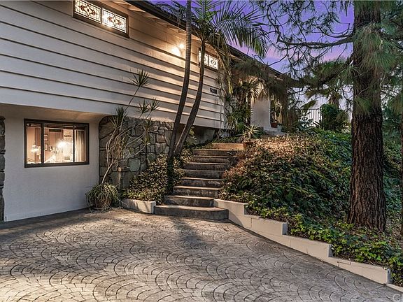 CUSTOM BUILT SINGLE LEVEL HOME IN THE MOUNTAIN SPRINGS ESTATES GATED COMMUNITY. Situated on an elevated view lot well above the street side, this home offers a stamped concrete driveway, mature pine trees, stone facade & steps leading up to the entry door. The front door opens to a cozy entryway w/hardwood floors & to the open living space featuring vaulted exposed beam ceilings, a floor-to-ceiling stone fireplace w/tiled floating hearth, custom built media center, two pairs of panoramic picture windows w/upper glass & wood shutters. The living area opens to the kitchen offering solid wood cabinetry, Corian countertops, stainless appliances, trey ceiling, a breakfast bar, spacious dining room w/designer light fixture & bar. Hallway leading to bedrooms w/laundry closet & stairs down to the three car garage, currently one bay is a workshop. Master bedroom features carpeted floors, a slider to a private covered patio, custom windows to a juliet view balcony & a wall of closets. Master bathroom w/sink, vanity counter & tiled sunken shower/tub. Two additional bedrooms w/carpet & wood shutters. Hall guest bathroom w/spacious counters & sunken shower/tub. Backyard with a park like setting featuring manicured grounds w/artificial turf, concrete decking, rock planters & pathway & in ground spa. Brand new exterior paint, termite clearance and new HVAC system.