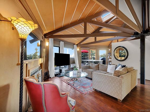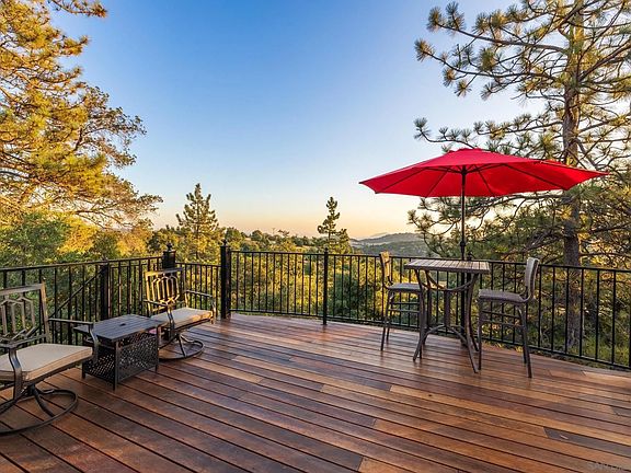 Welcome to Shangri La! Loosely translated, Shangri La is a hideaway of idyllic beauty and tranquility. Which is exactly what you will find in this mountain home where unique architecture meets natural beauty. Located in the peaceful community of Pine Hills, this charming 2 bedroom, 2 bath home with approximately 844 sq. ft. of living space sits on just over 1 acre of land with westerly views of the mountains and ocean on a clear day. Circular homes are said to be energy efficient, as they have less surface area to come in contact with adverse weather conditions, improving their overall durability and energy efficiency of the home. Rounded architecture is also thought to epitomize balance and harmony which is felt when you step out to the Brazilian Ipe deck with private, unobstructed views and built in BBQ. While the home is perfectly situated as a full-time residence, there is no denying that it would make for a successful short-term rental or Air BnB. Energy efficient split units in the living room and each bedroom offer heat and ac as well as a wood burning fireplace in the living room and primary bedroom for cozy evenings by the fire The main deck wraps around the entire structure, giving you a sense of living in the tree tops and offering views from every room of the house. The lower portion of the home has another brand new, beautifully shaded deck perfect for an evening glass of wine and a space currently used as an office with a separate laundry area. A detached 2-car garage with new electrical wiring and a new roof round out the home’s amenities.