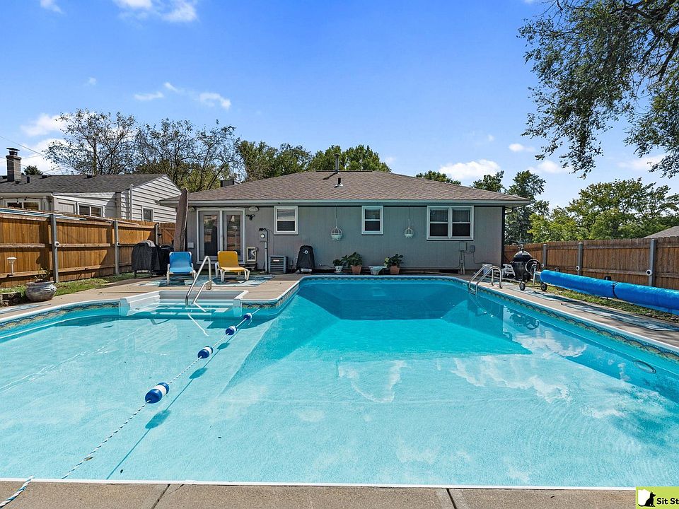 It is possible to have an incredible in-ground pool and a 3 car garage at this price! Inside features bright white walls, high end luxury vinyl plank, and expensive carpet in the bedrooms and in the lower level. You'll love warming up to the electric fireplace this fall and then in the summer, hit the pool! It has several depths, even a diving board! All of the pool's plumbing was just replaced & all of the equipment is included! You'll love the wood privacy fence, all of the beautiful unique landscaping and the 3rd car detached garage. It's accessible from a back gate & the alley. Laundry room also has a rough in for a toilet & sink. Roof 3 years old. Water Heater 2 years old. New electrical panel 2 years ago. Buyer to verify schools. All measurements approximate.