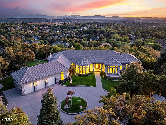 Nestled on 8.48 acres of natural beauty, this exquisite estate offers ultimate privacy and serenity, surrounded by mature trees and granite boulders. Tucked away at the end of a rock-lined private drive and secured by two sets of double wrought iron gates, this property is a true sanctuary. A grand heated circular driveway welcomes you and your guests to one of the most refined and impressive residences in Ogden's mountain foothills. The timeless exterior showcases classic granite and a tile roof, complemented by expansive windows that frame panoramic 360-degree views of the surrounding mountains, valley, lake, and local wildlife. What you won't see are neighbors - no other rooftops in sight. Step inside to discover a breathtaking interior with soaring ceilings, refined moldings, and expansive open living spaces designed for both large-scale entertaining and intimate, everyday living. At the heart of the home, an elegant circular staircase encased in windows serves as a stunning architectural focal point. This property also features a casita, perfect for a getaway or for guests. Whether hosting grand gatherings or enjoying quiet moments, this exceptional estate offers the perfect balance of grandeur and warmth. Own a truly rare and remarkable property with deep roots in Utah's legacy.