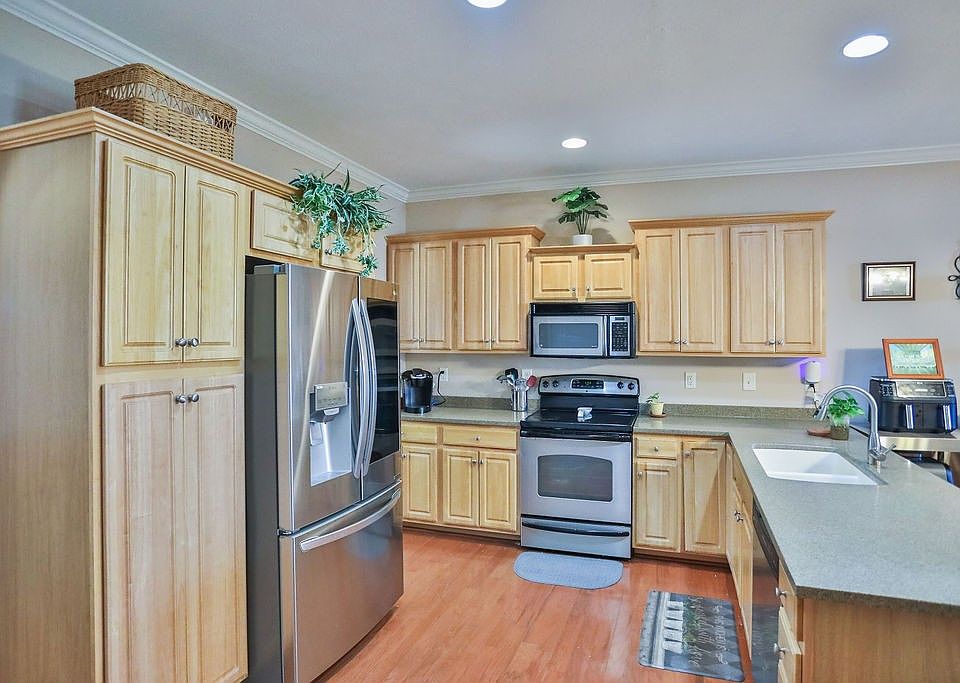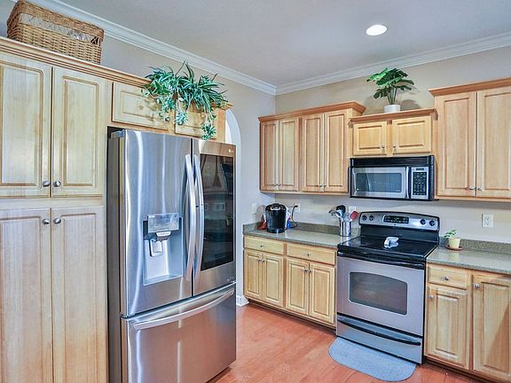 Beautiful home located in a gated community near the lake & golfing. The main level features a spacious primary suite with double closets, a newly installed shower, separate tub, full bath, plus a convenient half bath and laundry room. Washer & Dryer remain. The formal dining room—currently used as an office—adds versatility to the space. You’ll love the 9-foot ceilings, arched doorways, and open floor plan that creates a welcoming flow, perfect for gatherings. The kitchen offers abundant cabinet space, stainless steel appliances, and opens to a breakfast nook and great room with a cozy propane fireplace. Step outside to a large private deck, ideal for relaxing or entertaining. Upstairs, you’ll find two additional bedrooms, one of which can also serve as a bonus room. A partially floored walk-in attic provides extra storage. 2 car garage. With its abundance of natural light throughout, this home feels bright, open, and inviting. Location is superb! Close to downtown Nash, Hospital, Airport & tons of shopping. HVAC-2020 Flooring-2021 New Fridge-2021 Reno bathroom 2021.
