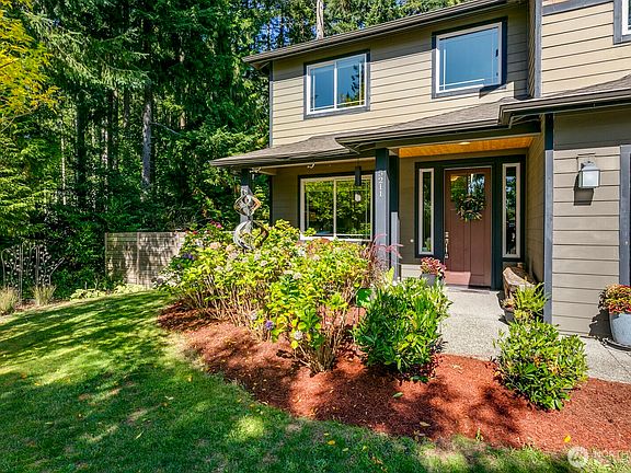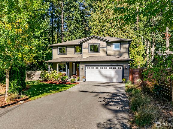 Tucked at the end of a quiet street this home is wonderfully located backed to a greenbelt, seemingly so far away yet just minutes to shops, restaurants, Boeing and EZ commutes. Enjoy sunshine on the covered front porch with SW exposure. Formal living room welcomes you through the front door, while the kitchen & family room are open & spacious, ready for gatherings. Enjoy new carpet and vinyl flooring, stone counters, SS appliances and plenty of cupboards. Upstairs find a nice landing bonus space and 4 bedrooms. Primary w/ensuite bath and plenty of closet space. Nature abounds in the backyard as woods surround the home with peace & privacy. No HOA.