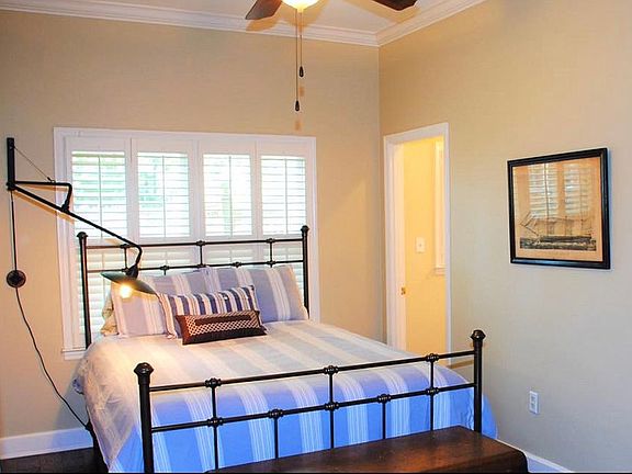 The charming vintage “Rose Cottage” was built in the 1940's, but you would never guess it! It has been updated floor to ceiling with high end finishes & upgrades. Hand-scraped wide plank dark hardwood floors throughout except for the addition which is ceramic tile. 6” baseboards, wainscoting molding, and heavy decorative multi-stepped crown molding. Extra high smooth ceilings & Custom wood plantation shutters throughout. 2 bedrooms, each with walk in closets & full en suite attached baths, Living Room with fireplace, Kitchen w/ pantry, neutral Corian countertops & ceramic wall tile, sunny Breakfast/Dining room, walk-in Laundry room, plus a Large Addition flex space - could be a non-conforming third bedroom (simple closet construction could make it conforming), a larger formal dining room, a family room, a home office, etc. Excellent potential to renovate into a modern master suite. Back Yard: 6’ wood privacy fence. Brick patio. Beautiful oak trees & landscaping includes many blooming perennials. Shed 1: fully enclosed & insulated. Vinyl cladding & accent paint matches the house, overhead lighting & power outlets, window. Shed 2: pt pine w/ metal roof- perfect place to store lawnmower & garden tools. The house is vinyl clad for a low maintenance exterior w/ solid brick crawl space foundation surround. Gas tankless hot water heater.