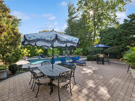 Discover timeless charm and modern comfort in this classic Colonial, perfectly situated in one of Douglaston’s most desirable neighborhoods. Designed for both relaxation and entertaining, this family-friendly home features an in-ground swimming pool surrounded by tall pine trees, creating a private tropical paradise right in your backyard.