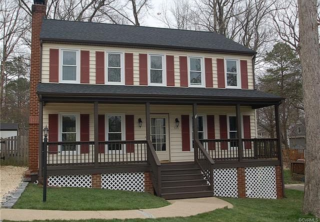 This fantastic 3 bedroom, 2.5 bath Colonial, with full country front porch has it all! With a new roof and windows, as well as maintenance free vinyl siding, your weekends will be free to enjoy the private fenced in rear yard and two tiered deck. Updated kitchen with white cabinets, new flooring, and new smoothtop range. Large family room with wood burning fireplace and white brick hearth and updated flooring, atrium door to deck. Nice and bright master bedroom with walk in closet, the upstairs also offers two other bright bedrooms. Home is convenient to shopping and restaurants. Great schools are an added bonus.