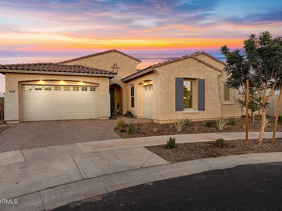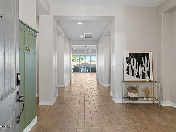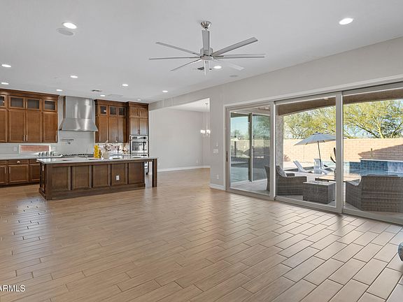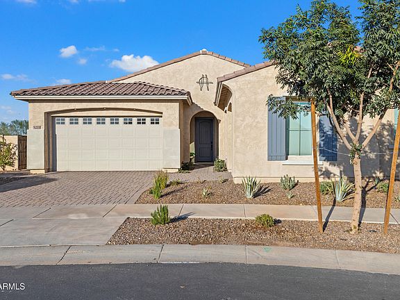 Stunning 3 bed, 3.5 bath home with 2,800+ sq ft in Eastmark Estates, built in 2022 with over $100K in builder upgrades plus custom finishes. Gourmet kitchen features Monogram appliances, 48'' fridge, double ovens, oversized island & glass-front cabinets. Dining room bay window, living room multi-sliding doors, upgraded wood-look tile, herringbone office detail, surround sound, and custom maple built-ins elevate the interior. Backyard is an entertainer's dream with heated pool/spa, Baja shelf, fountains, travertine, 16x18 pergola, turf play area, firepit retreat, landscape lighting, and 5 citrus trees. Premium design, thoughtful upgrades, and resort-style outdoor living make this Eastmark gem truly one of a kind!