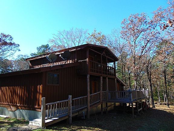 Nice 1,680 square foot two story cabin on 4.04 acres, m/l at Cedar Lake, South of Hodgen, Oklahoma. The cabin is three (3) bedroom, 2.5 baths with cedar wood finish through out the house. The cabin has central heat and air, fireplace, electric, rural water, propane gas, and washer and dryer hookups. The property has six (3) RV/Trailer electric hook-ups, a shipping/storage container, metal horse corrals and joins the Ouachita National Forest and the Cedar Lake equestrian trails. This would make a great remote Lake Home or weekend retreat for all your recreational activities.