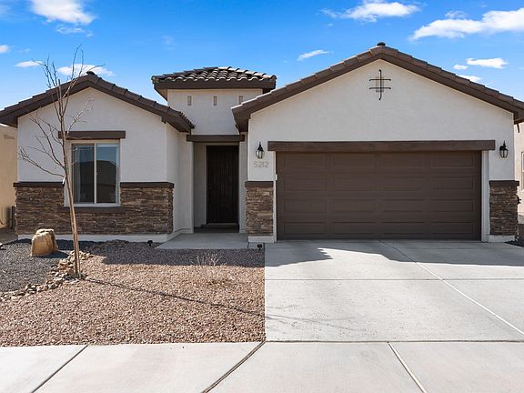 Stunning 4-bedroom, 2-bath Hakes Brothers home in the desirable Lomas Encantadas community. Built in 2022, this Tuscan-inspired beauty boasts a spacious open-concept layout filled with natural light, creating a warm and inviting atmosphere. The modern interior features 8' doors, upgraded light fixtures, and high-end finishes throughout. Enjoy outdoor living on the extended patio and the low-maintenance backyard with turf, rock, and a drip system which ensures effortless keep-up. The garage is finished and epoxied. Tankless water heater, and a smart thermostat enhance convenience. Plus, with a HERS score of <50, this energy-efficient home will drastically lower your cost of living. Near top-rated schools, gyms, and shopping. *PID COMPLETELY PAID OFF*