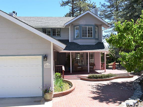 Charming Wrightwood home with a covered front porch and beautiful red brick walkways and front patio. This great 3 bedroom 2 1/2 bath home with a 2 car attached garage on a quiet street. Living room has a gas fireplace, built in bookshelves and a sliding glass door with its own deck. Great country kitchen with a large island, newer dish washer and laminate flooring. Sliding glass door opens up to a beautiful deck perfect for entertaining and relaxing. Master bedroom with bay windows and double closets. Master bath with a large soaking tub, shower and granite counter top vanity. Top of stairs with a sitting area or room for an office desk. Nice size bedrooms with beautiful views of the trees and sky. Convenient full bath for both bedrooms upstairs. Home has air conditioning, newer laminate floors and tons of charm. Great home and easy access to Lone Pine Canyon and Highway two.
