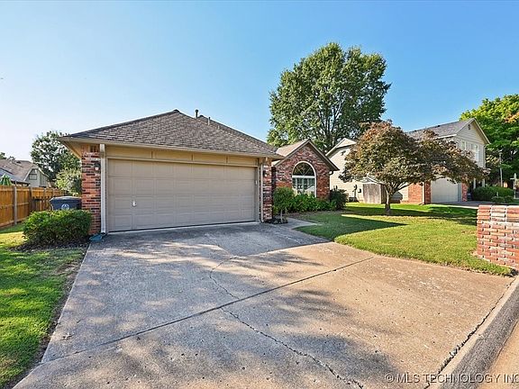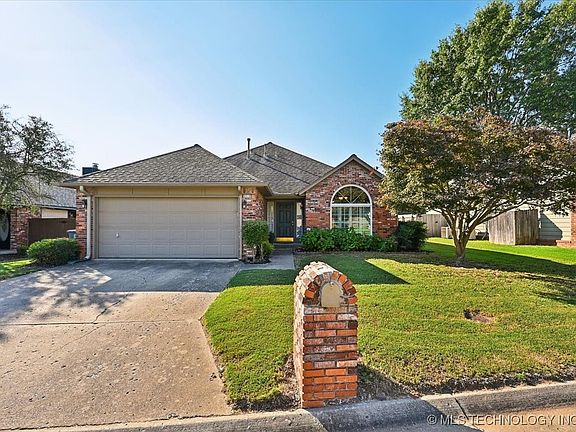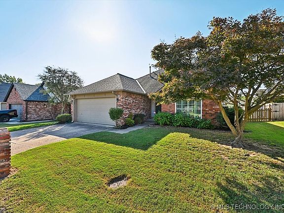 Schedule your appointment today to tour this spacious one-level home, featuring a large Living-Dining area and a separate kitchen with a charming breakfast nook. The expansive Living Room-Dining Room combination boasts a vaulted ceiling and ample natura1 light throughout the day. Stay cozy during chilly weather with the brick fireplace in the Living Room. Step outside to the beautifully landscaped backyard, complete with a pergola over the patio. A light and bright kitchen also features a tall ceiling, abundant storage and countertop space, and a charming Palladian window in the breakfast nook. The Master Bedroom overlooks the serene backyard, and the Master Bath showcases a newly installed double roll-in shower. This convenient South Tulsa location provides easy access to the Creek Turnpike, Hwy 169, & Hunter Park. You'll find plenty of shopping, dining, and professional services nearby.
