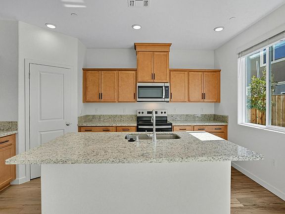Welcome to Park Place, ALL ELECTRIC, Modern Living Community. This is a two story - North facing home. The plan 3 offers 1,518 square feet of living space with 3 Bedrooms, 2.5 Bathrooms and a 2-car bay garage. This home offers Maple cabinets with a Rye finish, concealed hinges and matte black hardware. The kitchen offers Amana electric appliances with a 4-element free standing electric range - includes Refrigerator, Washer and Dryer. The Kitchen offers Granite countertops with a 6'' Granite backsplash. Additional Features include - Luxury Vinyl Plank (LVP) Flooring at first floor, Bathrooms and Laundry room. Shaw Carpet in Bedrooms, Hallway upstairs and staircase. 3 1/4 Baseboards, Blinds, Backyard Landscaping, Solar - Lease and Purchase options, Energy Efficient Tankless Water Heater and Century Connect Home Automation System. The community offers a convenient location close to essentials, plus major attractions and employment hubs, including the Sacramento Zoo, US Davis Medical Center, and California State University, Sacramento. Park Place is an idyllic community for those seeking a balanced blend of suburban living and big-city amenities.