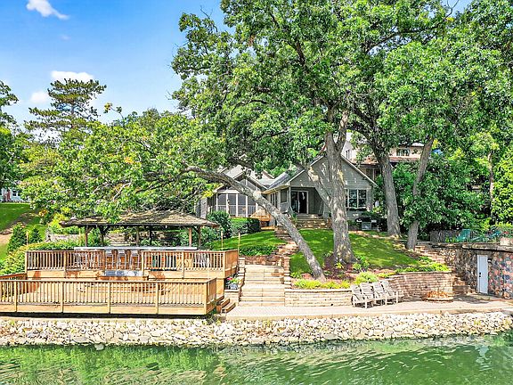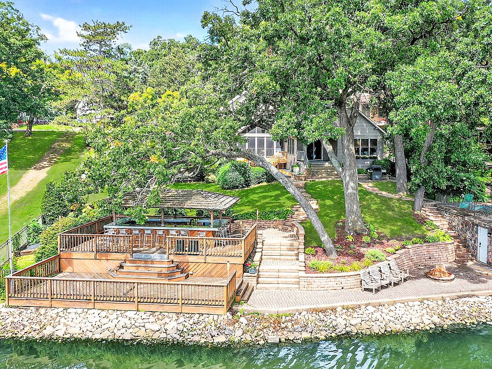 Welcome to your dream lakefront retreat, presented with a rare opportunity to own the iconic Tiki Bar Lake House! Nestled along the shores of the largest private lake in the entire state, this stunning property offers the perfect combination of serene natural beauty and prime entertainment space on a DOUBLE LOT connected to private sandy beach access, a massive tiki bar surrounded by a 2-tiered deck, sunbathing rooftop above the boat house, screened-in porch, fully stocked basement bar, and private movie theater. Imagine waking to the tranquil waters, the sun glistening off the shoreline, and knowing both beach and boat access are yours, within a community where families thrive, wildlife flourishes, and recreation is a part of daily life. Whether you are fishing for walleye, enjoying a sailboat race, professional water-ski show, or simply sharing sunset views from your deck, this lakefront home is an invitation to make Wonder Lake your everyday paradise. Enter through the front foyer into an open floor plan filled with natural light from large windows that bring the panoramic lake views right into your home. The updated kitchen is designed for both style and function, while the cozy living room with its warm ambiance is ideal for gathering with family and friends with an extension of entertainment space on the attached screened-in porch. The primary suite offers breathtaking views of the lake, has a private bathroom with an oversized spa-like steam shower, and a 9x9 walk-in closet. The finished basement has potential for a 3rd bedroom if needed and a theater room where your private cinema awaits. Escape to your own high-tech, soundproofed space equipped with state-of-the-art surround sound and massive projection screen for the ultimate movie night or epic sporting events while the tiered seating ensures every guest has the best view in the house. Another highlight of the basement is the stunning log cabin bar where rustic charm meets modern function crafted with rich-toned wood throughout, giving a cozy log cabin feel with the high-end functionality of a commercial establishment having its own built-in coolers, restaurant style ice-maker, mini fridge, and surround sound speaker system within the walls and ceiling. In the back yard, experience the ultimate in lakeside living with the extraordinary outdoor bar and deck. The professional-grade bar is a focal point for entertaining, complete with ample counter space for serving guests. Descend from the main level to a spacious lower deck that flows naturally toward the water's edge, offering easy access for lakeside activities. Custom features, including built-in speakers, tiki torches, refrigerated commercial coolers and deep sink, ensure a comfortable and inviting atmosphere that comes to life after sunset. This property is perfect for hosting memorable parties, intimate gatherings, or simply enjoying a tranquil sunset over the water. The additional boat house is perfect for storage and has rooftop access for sunbathing. The wide driveway allows for boat/trailer parking with additional parking space on the gravel to the right of the driveway. Wonder Lake spans nearly 840 acres and offers 7 miles of shoreline providing ample opportunity for boating, swimming, and water sports with a maximum depth of 14 feet, ideal for a variety of water activities. A major dredging effort in 2015 removed mass amounts of sediment to enhance the depth and water quality adding roughly 100 acres of cleaner, deeper water. The Wonder Lake Yacht Club hosts regular sailboat races, and the Water Ski Show Team performs nationally award-winning shows every summer. Whether you are looking for a forever home, vacation home, or investment property for Airbnb/Vrbo short-term rentals, this property offers it all!