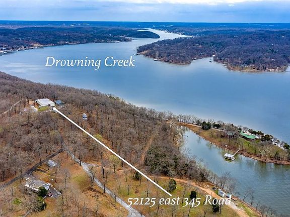 DROWNING CREEK WATERFRONT PROPERTY!!!! 8.85 +/- acres with 800'+/- shoreline. 100' x 150' Red Iron Shop, insulated, H/A (2) 5-ton heat pumps, 10' overhead doors on both ends Concrete Floor. 30' x 50' Pole Barn with 12' x 10' overhead door and gravel floor. GRDA permitted Water System. DOCKABLE COVE