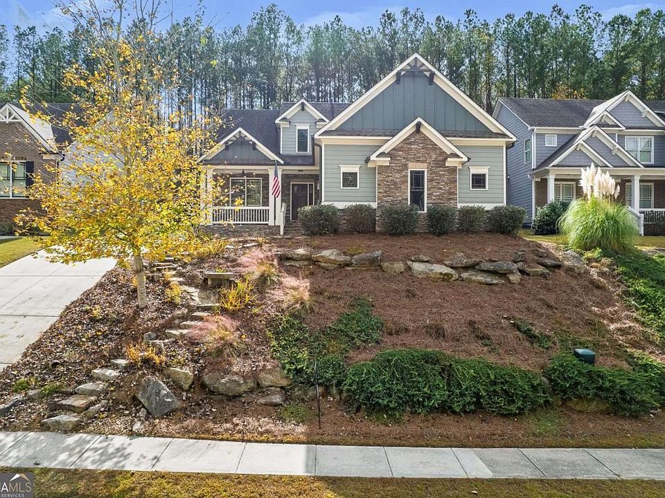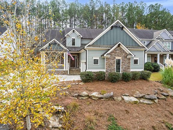 Charming Craftsman-style home located in the sought-after Enclave at Historic Acworth community, a picturesque neighborhood of just 44 homes. Perfectly situated on a quiet cul-de-sac street, this property offers residents exclusive access to a private trail leading to a serene cove on Lake Allatoona. Enjoy an unbeatable location only 1.3 miles from Downtown Acworth-just a five-minute golf cart ride to a variety of shopping and dining options! This beautifully maintained, original-owner home welcomes you with an inviting front porch and entry foyer leading to a formal dining room featuring a coffered ceiling. The spacious kitchen is ideal for cooking and entertaining, complete with a center island for meal prep, rich stained cabinetry, granite countertops, an upgraded gas stove and dishwasher, plus both under-cabinet and overhead lighting. A cozy breakfast room provides the perfect spot for casual meals and opens to the rear patio-great for grilling and relaxing. The open-concept family room features a gas log fireplace for added warmth and charm. The highly sought-after primary suite on the main level offers a true retreat with a tray ceiling, private access to the patio, and a luxurious ensuite bath featuring a double vanity, soaking tub, separate shower, and walk-in closet with custom cabinetry. The closet conveniently connects to the laundry room, which also features custom cabinetry and a built-in ironing board. From the 2-car garage, the owner's entry leads into a practical drop zone with built-in cabinetry, while a convenient half bath completes the main level. Upstairs, you'll find a loft area-perfect for reading, studying, or a home office-along with three generously sized bedrooms that share a full hall bath. Additional enhancements by the owners include plantation shutters throughout, expanded under-stair storage, professional landscaping with stone steps, an added parking pad, and a new water heater installed in May 2025. Homes rarely come available in this charming community-known for its beautiful architecture, private access to Lake Allatoona, close proximity to Downtown Acworth, easy I-75 access, and abundance of nearby shopping, dining, and outdoor recreation. One of the bonuses of being a City of Acworth resident is two free annual parking passes to lakeside parks and beaches.