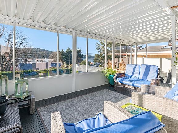 A coastal-inspired retreat tucked into a quiet Uptown corner. This thoughtfully designed home sits on a desirable corner lot and centres around a stunning 250 sqft enclosed four-season sundeck with sweeping views of the Alberni Inlet and surrounding mountains. Inside, the main level offers a bright, open-concept living and dining area with sun tunnels and an electric fireplace. The kitchen features quartz counters, stainless steel appliances, an induction cooktop, wall oven, and walk-in pantry. Off the kitchen, a Juliet balcony adds charm. The spacious primary bedroom includes its own fireplace and walk-in closet. Downstairs, find a cozy family room, two bedrooms, a 3-pc bath, laundry, and a workshop with garage access. Outside, irrigated garden beds, a privacy hedge, and stone patio create a peaceful outdoor haven. Just a short walk to Harbour Quay, shops, restaurants, and the Quay to Quay path. A home filled with care, light, and possibility. Call to arrange a private viewing.