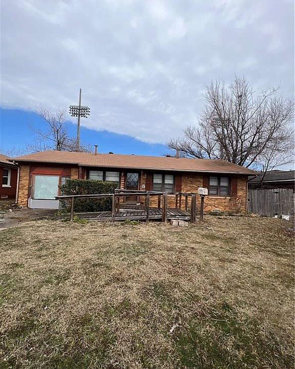 Home backs up to Putnam City Original Football Stadium. The Garage has been converted to a Bedroom but can be converted back to a garage. Home is 3 Beds, 1 Bath. Part of Kitchen & Bath have been remodeled. REAL HARD WOOD FLOORS throughout just need sanding & refinishing to be BEAUTIFUL back to ORIGINAL finish. Furnace is 3 years old. Hot Water Tank is 2020. Has inside LAUNDRY room. Exterior spiggot in back yard is capped off but operational. Garbage Disposal is 2022.