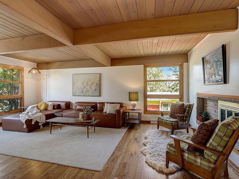 Unique mid-century modern home in UNIVERSITY HILL FARMS filled with authentic charm & modern updates! Original rare Pecky Cypress and beamed ceilings throughout exudes warmth & character. Thoughtfully remodeled bath pays homage to homes mid-century roots, incorporating retro finishes to compliment homes architectural history. Custom built-ins, 2 fireplaces, updated kitchen & large screened porch overlooking professionally landscaped yard. Large bedrooms, LL with walk-out to yard, oversized 2 car garage. Numerous recent updates including LR & DR windows (Marvin historic), water heater, washer, dishwasher, stovetop & patio. This is a one-of-a-kind gem!