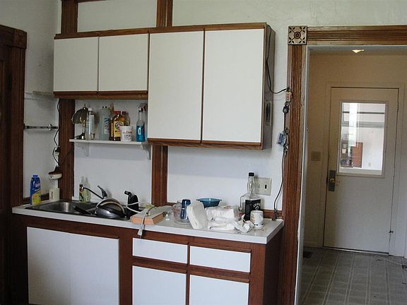 There is 1 bedroom on main floor & 3 up, 1 bedroom up has sink & cabinet but could be a den, office. If 2 bedrooms needed on main floor, DR could be used as a LR as kitchen is large enough to have eat-in. All floor coverings need to be changed or can refinish wood floors. Walk-up attic is floored and nice for storage or possible finish for some living space. Laundry in basement. Furnace & roof are believed to be less than 5 years. Has circuit breakers. Two large storage buildings in back yard. Nice back yard. SHARED WELL. See well agreement online. Garage is 23x27.