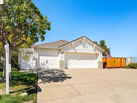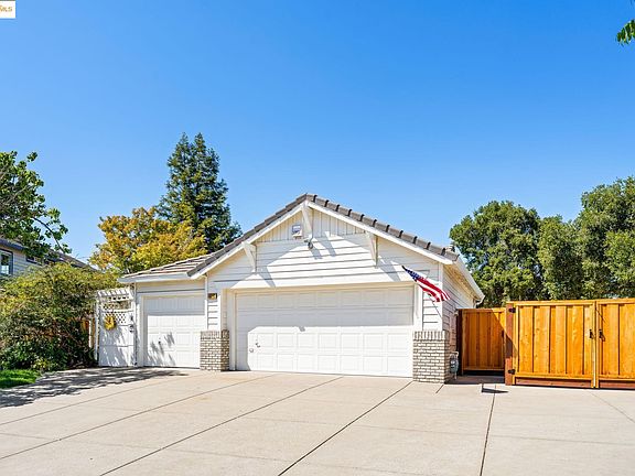 Fabulous single story at the end of a small quiet court. Great first time home buyer purchase. 3 bed, 2 full bath, single story with hard wood flooring througout. Calming front porch area with trellis and shade tree for morning coffee. Light, bright and open floorplan. 2 sliding doors, includes kitchen fridge, washer and dryer, dual vanity in primary bath, new vanity and walk in shower in hall bath. 3 car garage, storage cabinets in garage and what a backyard with shed and full detached 'office'. No rear neighbors, views and fully landscape with side yard access and tons of room for parking.