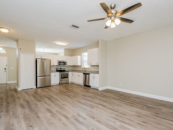 Please note, our homes are available on a first-come, first-serve basis and are not reserved until the lease is signed by all applicants and security deposits are collected. This home features Progress Smart Home - Progress Residential's smart home app, which allows you to control the home securely from any of your devices. Want to tour on your own? Click the "Self Tour" button on this home's RentProgress. Check out this beautiful three-bedroom, two-bathroom, one-story rental home in Riverview, FL. This open floor plan is perfect for gatherings. A lighted ceiling fan and neutral-colored walls complement the updated plank flooring. Sliding glass doors open to a sunroom that's bathed in natural light a perfect spot for morning coffee. There's plenty of countertop space in the charming kitchen to prepare meals, which also boasts modern stainless steel appliances. Sleek white cabinetry and a spacious pantry provide ample storage space for your cookware. Relax in the main bedroom with plush carpeting, a lighted ceiling fan, and an en suite bathroom. Keep your wardrobe organized in the expansive walk-in closet.