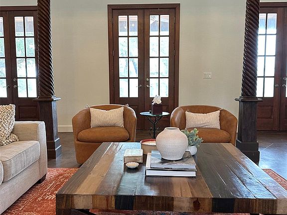- Beamed Ceilings, Bookcases, Built-in Features, Entrance Foyer, French Doors, Multiple Dining Areas, Walk-In Closet(s), Wired for Sound