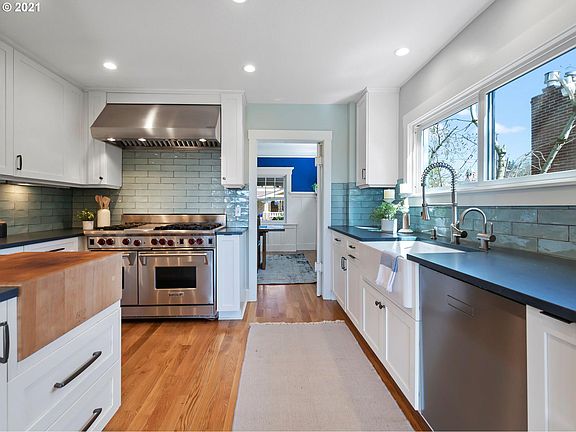 Entertain family and friends in style! With nearly $250k in upgrades, the exterior features handiplank siding, a lifetime roof, wood-clad windows, and a heated front porch plus ceiling fans! The gourmet kitchen boasts a 48" Wolf range, Wolf range hood, built-in John Boos butcher block, beverage cooler, ice maker and pantry. Roomy primary suite has vaulted ceilings, private deck w/views and walk-in closet. Two more bedrooms upstairs, plus an office & 2 remodeled bathrooms. Come tour today! [Home Energy Score = 7. HES Report at https://rpt.greenbuildingregistry.com/hes/OR10190351]