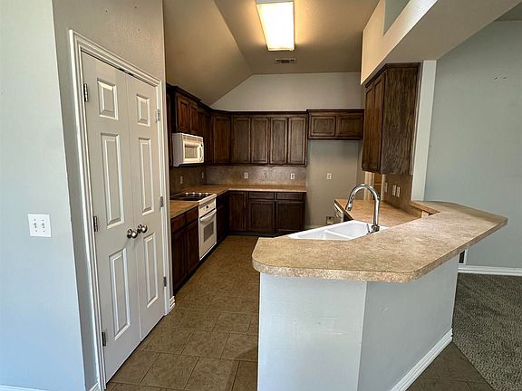Nice 4 bedroom 2 bath home For Lease with a POOL! Open floor plan, living area has fireplace, large windows and carpet flooring. Kitchen area has an abundance of cabinets, plant ledge, pantry and breakfast bar. Primary suite has walk in closets, double sinks, soaking tub and separate shower. Great size yard with covered patio and inground swimming pool. Storm cellar in garage. Close to schools! Security Deposit $2990 and app fee of $47 for anyone 18+yrs that checks credit, criminal and eviction history.