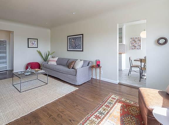 This beautifully renovated modern 1 bedroom/1 bathroom apartment truly feels like a home! Spacious and light filled with Hillside Views, Generous Living Room, Sunny eat in kitchen with newer appliances including a refrigerator, stove, dishwasher, built-in microwave. Updated bath, serene bedroom, shared outdoor space. Private garage with direct access entry. Separate laundry room & extra space for a studio, office or storage. High walk score of 89. Minutes to The Grove, LACMA, Beverly Hills, West Hollywood, La Brea Ave Art Galleries, shops and restaurants. Sorry no pets and no smoking.
