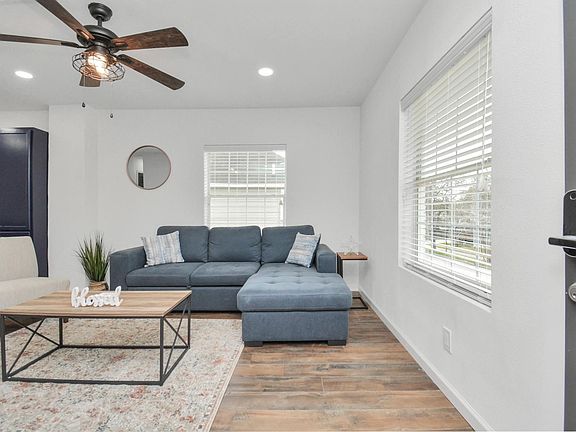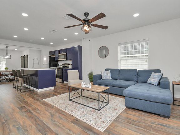 A beautifully renovated and fully furnished multi-family property offering style, comfort, and versatility. This two-story home features a modern white brick exterior with a charming covered entry. Inside, enjoy an open-concept layout with warm wood-style floors, recessed lighting, and a spacious living area that flows seamlessly into the dining and kitchen spaces. The chef-inspired kitchen boasts bold navy cabinetry, butcher block counters, stainless steel appliances, and an oversized island with seating. Bedrooms are generously sized, including a serene primary suite with a walk-in closet and spa-like bath featuring dual sinks, chic patterned tile floors, and a frameless glass shower. Each unit comes tastefully furnished with quality pieces, from comfortable sofas to stylish dining sets and beds, making it truly move-in ready. Additional highlights include in-unit laundry, updated fixtures, and a private fenced yard. Perfectly located near universities, dining, and downtown.