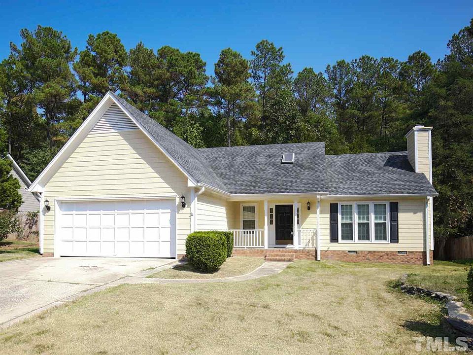 Move in ready Ranch in a great location! Open floorplan with spacious family room featuring wood burning fireplace, crown moulding, vaulted ceilings and skylight. Kitchen with breakfast area PLUS a separate dining room. Master suite with large bath and 2 walk in closets. Brand new carpet and paint in some rooms. Large deck overlooking wooded backyard and a 2 car attached garage. Wonderful street ending in a cul-de-sac after this house. Super convenient to RTP, airport and Brier Creek.