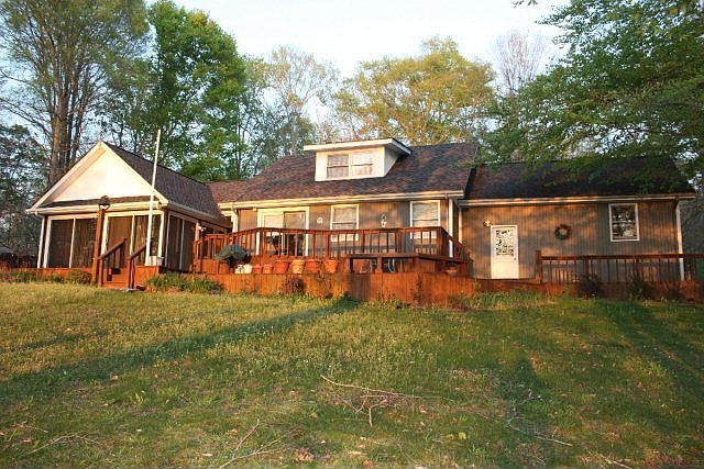 Your own private park! 4.96 acres. Driveway ends at this property. Surrounded by mature trees except for the fantastic view of Dale Hollow Lake. Privacy, peace and quiet. Home has living room with brick fireplace(gas logs) 3 bedrooms, 2 baths with showers, a bright, cheery sunroom, decks galore, attached garage and a partial bsement. Neat storage shed for mowers, etc. Concrete parking area and nice landscaping. This waiting on you so make an appointment to see!