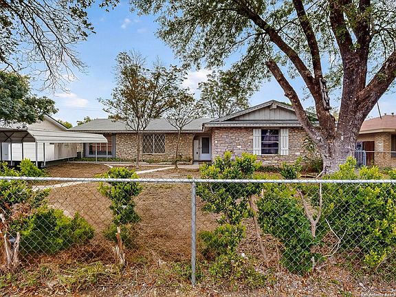 One story with four bedrooms, two baths, on a good sized lot. Home has a formal dining/living area near entrance, living/dining area. Floorplan has formal living/dining area, living area. Kitchen has stainless steel appliances and gas cooking. Some recent updates include plumbing, insulation& weatherization. A/C and roof around 10 years old. Exterior has nice sized backyard, Florida room, two storage sheds with electricity and covered patio. Close to IH-35, Loop 410, Fort Sam, Randolph AFB, Shopping & Schools. Sold as is, investor or handyman potential.